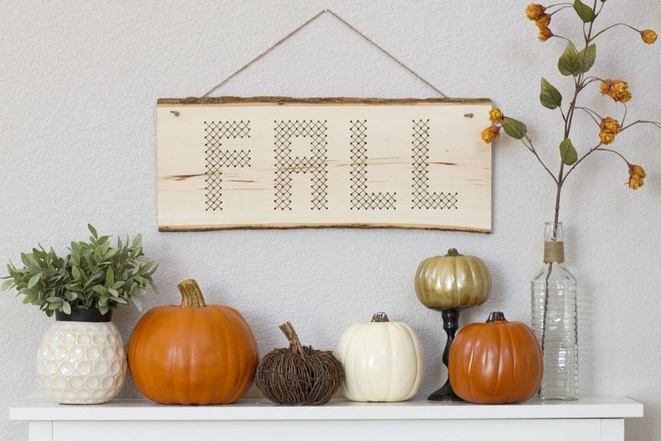 Sheer cuteness is the word coming to our minds at the very first glance of this apple-shaped craft that’s perhaps, the most winsome faux version of the fruit. This one-of-a-kind apple is actually nothing but a piece of wooden plaque that celebrates the apple-picking season at its best, ending up in a super creative fall outdoor decor for your space. The simple rustic plaque is subjected to a wonderful use of Martha Stewart chalkboard paint in Habanero, some liquid chalk, a few laser-cut stencils, a sheet of green felt, a foam paintbrush with round wooden handle, a drill, a saw, a glue gun and some glue sticks. That pastel red chalkboard paint coated over the plaque provides a lovely backdrop for the letters fall or your choice of design done in white chalk. The stem of the fruit here is the the end of a foam paint brush that’s painted in a coordinating color and glued to the top of the plaque. Speaking of the leaf, the final touches are brought by a cut-out of green felt, and voila! Your homemade DIY apple chalkboard is ready to be a part of your fall outdoor decor.